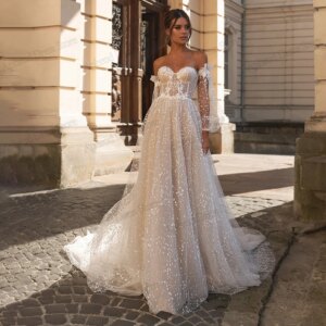 Romantic Wedding Dresses A-Line Tulle Tiered Bridal Gowns