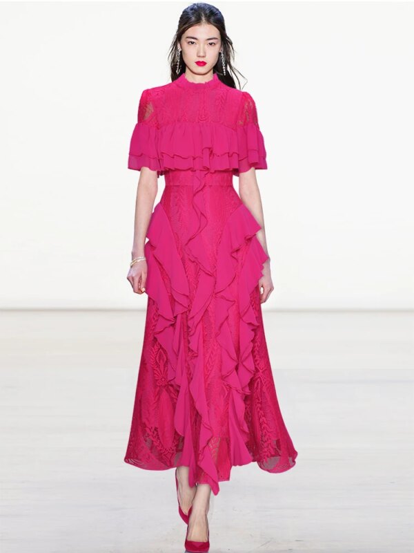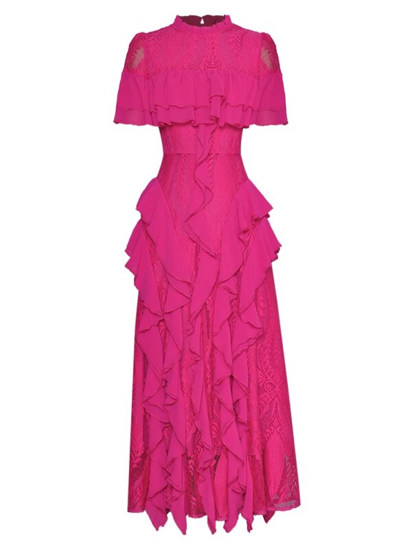 Party Celebrity Elegant Chic Lace Patchwork Midi Dress
