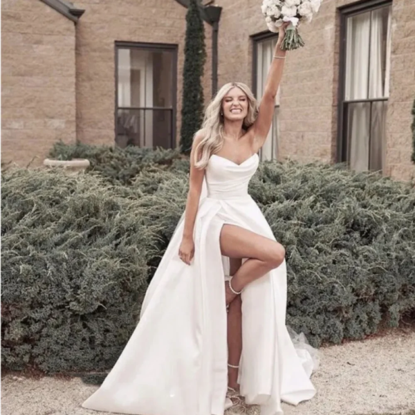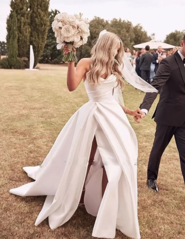 Side Split Wedding Dresses Strapless Neck Bridal Gowns