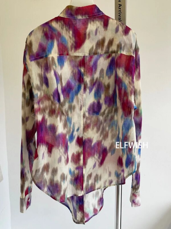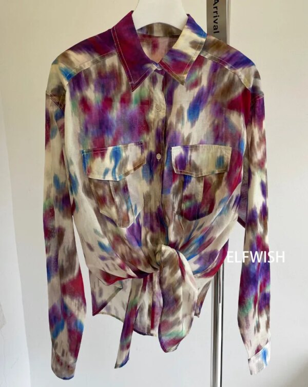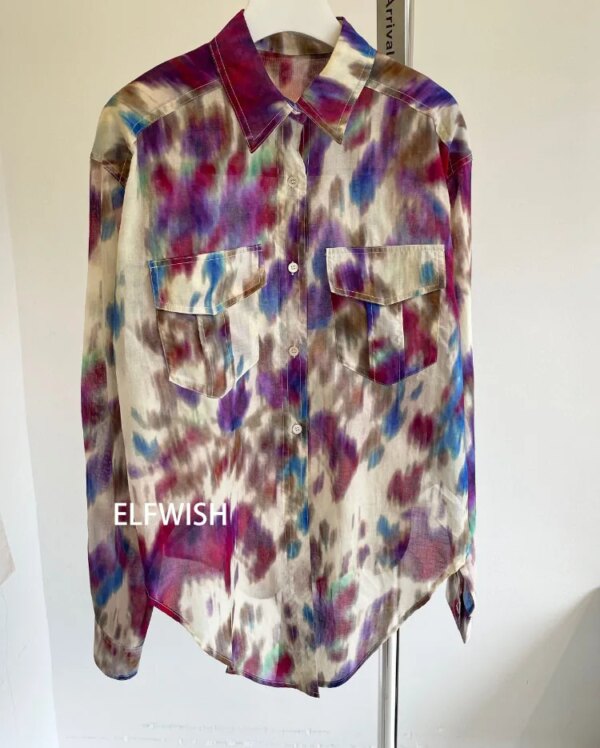 Summer Tie Dye Print Cotton Shirt Chest Pockets